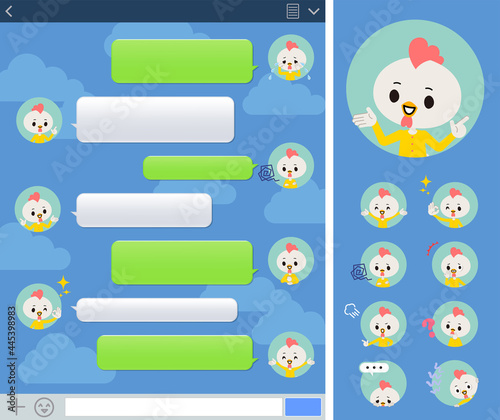 SNS画面で様々な感情表現をするトリの男の子のセット