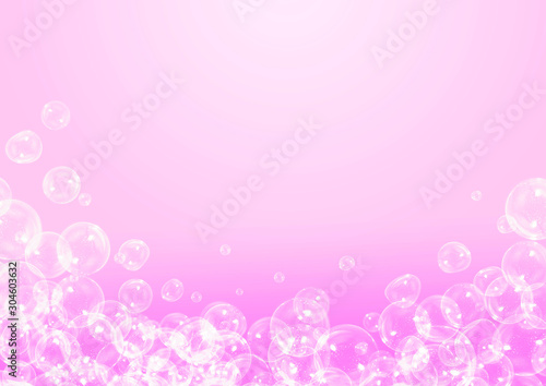 Soap bubbles on pink background with copy space