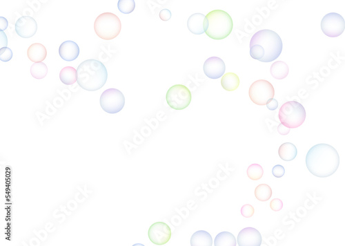 Soap bubbles randomly flew on a white background. Background design. Vector
