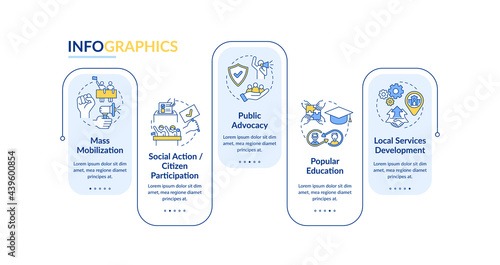 Society change vector infographic template. Popular education presentation outline design elements. Data visualization with 5 steps. Process timeline info chart. Workflow layout with line icons