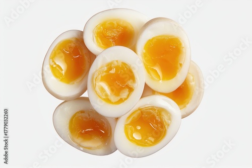 Soft Boiled Egg Halves on White Background