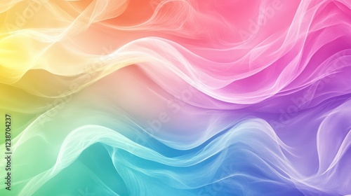 Soft pastel rainbow curves with a gradient fade, creating a dreamy and ethereal abstract composition
