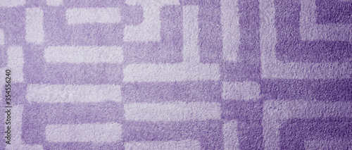 Soft purple carpet texture as background, top view. Banner design