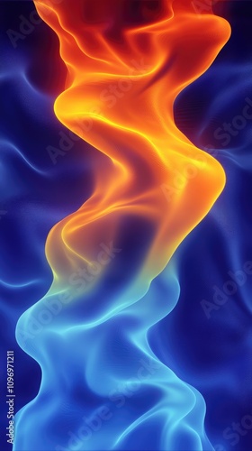 Soft waves flow seamlessly in a blend of rich orange and serene blue hues, creating a captivating abstract backdrop perfect for adding a touch of sophistication to various creative projects