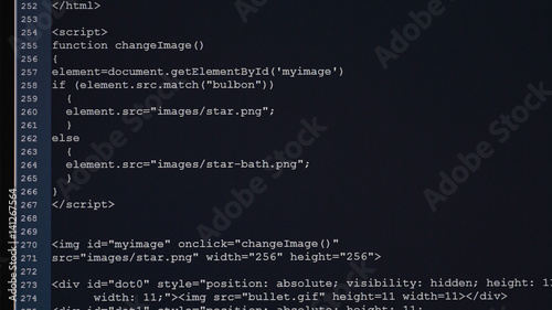 Software developer programming code on computer display. Abstract script code is listing in white letters in deep blue background.