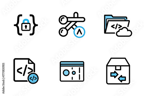 Software Development and Programming Icons Set - API, Cloud, Code Security, Web, Deployment Vector
