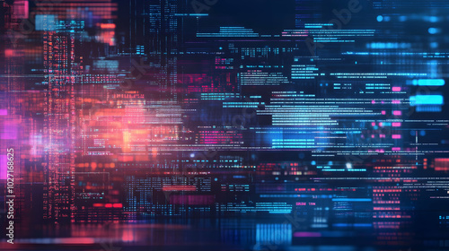 Software development concept showcasing programming and business analysis through a computer code interface illustration -