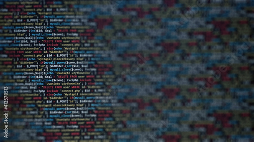 Software development monitor screen background. Developer display with source code. Programming concept