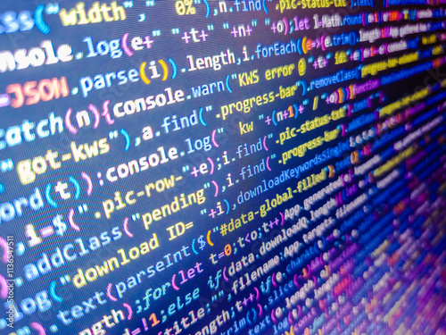 Software development pattern. Demand for experienced programmers. Binary code. Background of program code. Remote work search. Web dewelopment. Abstract modern virtual computer script.