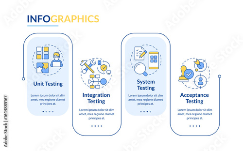 Software testing methodologies rectangle infographic vector. Feature integration. Data visualization with 4 steps. Editable rectangular options chart. Lato-Bold, Regular fonts used