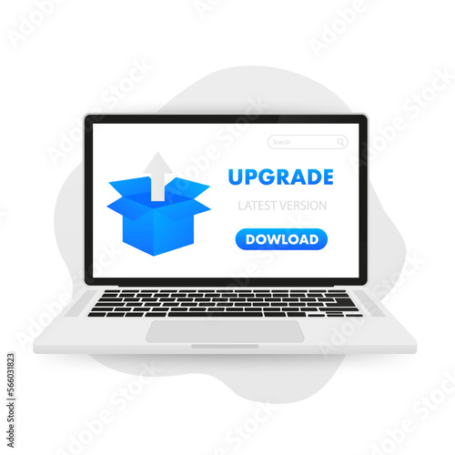 Software update or operating system. Updating progress bar. Installing app patch. Upgrade to keep the device up to date with added functionality in the new version. Flat design. Vector illustration