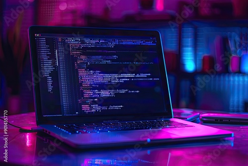 Software, web development, programming concept. Abstract Programming language and program code on screen laptop