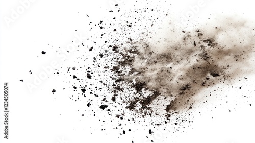 Soil explosion, isolated, white background, dust cloud, design element