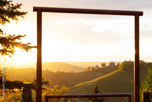 Grabkapelle auf dem Württemberg und Stuttgart. Weinberge im Herbst.