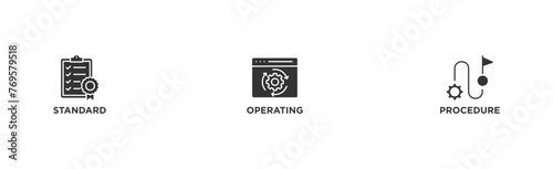 SOP banner web icon illustration concept for the standard operating procedure with an icon of instruction, quality, manual, process, operation, sequence, workflow, iteration, and puzzle