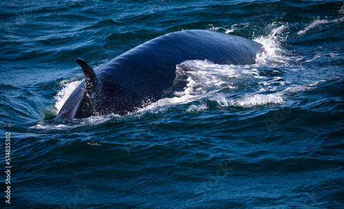 Southern whale diving in the Atlantic Ocean near the South African town of Hermanus to continue its migration around the world, this is one of the best places in the world to observe marine animals.
