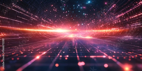 space grid effects pulse into radiant glowing cosmic fields., Generative AI