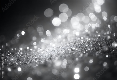 Sparkling Silver Glitter Background with Bokeh Lights