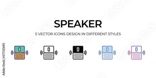 speaker Icon Design in Five style with Editable Stroke. Line, Solid, Flat Line, Duo Tone Color, and Color Gradient Line. Suitable for Web Page, Mobile App, UI, UX and GUI design.