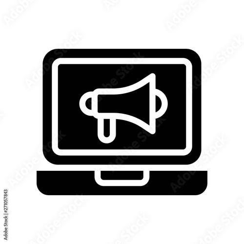 Speaker on laptop screen vector, Digital marketing solid style icon