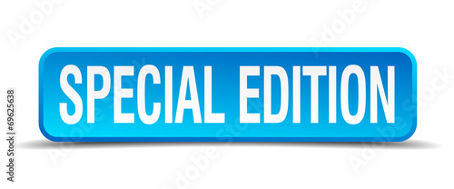 Special edition blue 3d realistic square isolated button