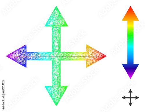 Spectrum colored net expand arrows, and solid spectrum gradient expand arrows icon. Wire frame flat net abstract symbol based on expand arrows icon, is created with intersected lines.