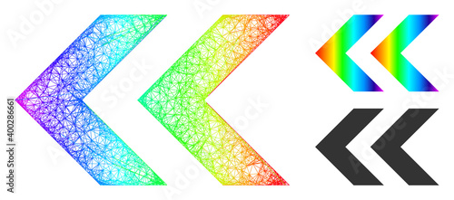 Spectrum colored wire frame shift left, and solid spectrum gradient shift left icon. Linear frame 2D network abstract image based on shift left icon, is made with crossing lines.