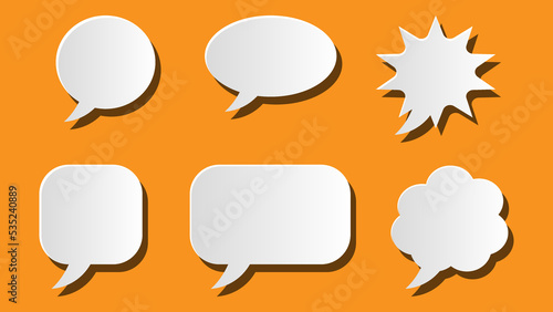 speech bubble set. blank cartoon chat box with shadow isolated on orange background