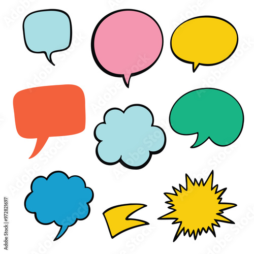 Speech bubbles. Chat vector icon. Talk bubble speech icon. Blank empty bubbles vector design elements.. Retro empty comic speech bubbles set with black halftone shadows.