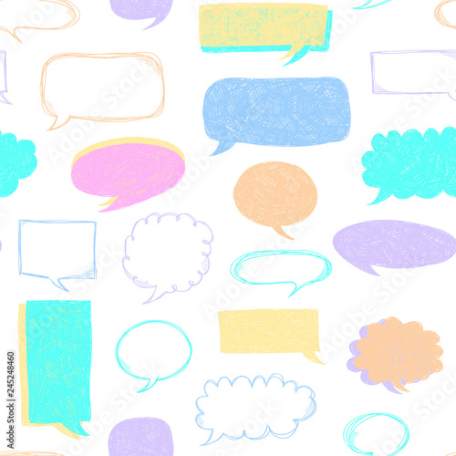 Speech bubbles pattern. Message frames. Doodles background. Scribble frames. Sketch. Hand drawn effect vector. Social media. Comics text. Chat. Dialog clouds.