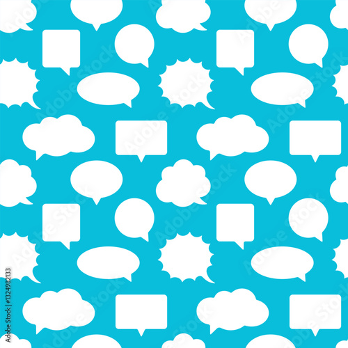 Speech bubbles. White elements on blue background. Vector seamless pattern.