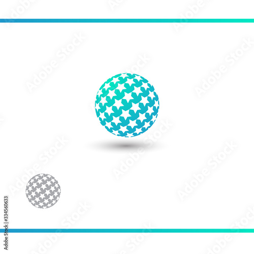 Sphere with star pattern. Globe with stars. Logo design template. Blue color. Watermark version. Vector Icon