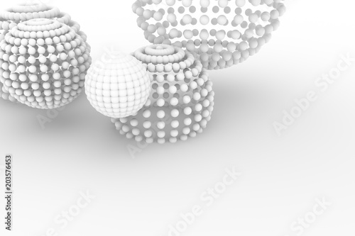 Spheres, modern style soft white & gray background. Design, space, monochrome & blank.
