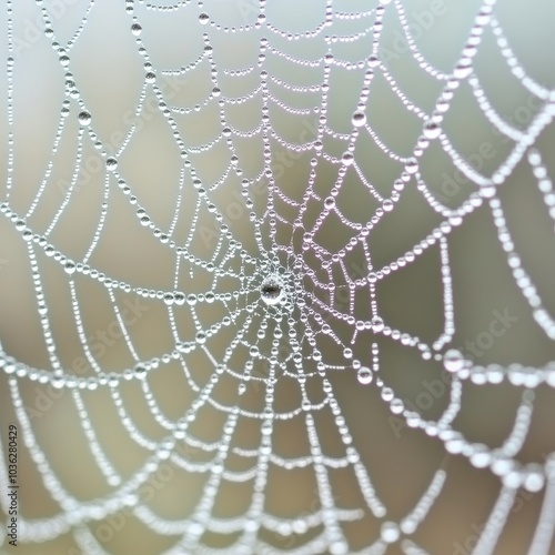 Spider web with morning dew drops in close-up