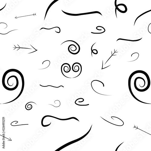 Spiral arrows line vector seamless pattern. Seamless doodle ink pointer and arrow pattern