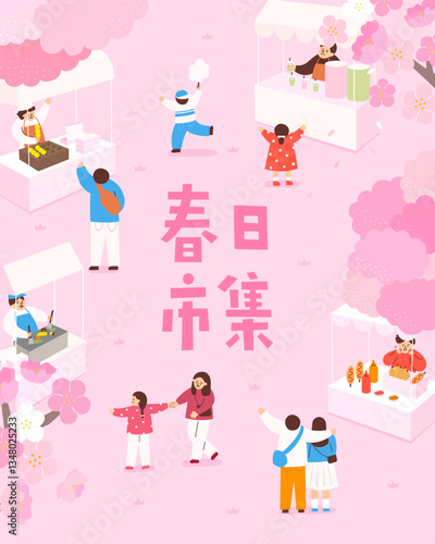 Spring Market. People are buying food in the market