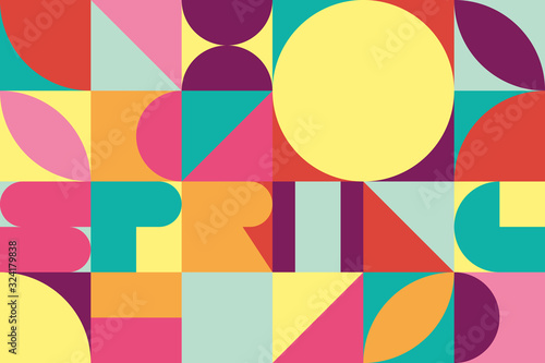 Spring trendy geometric background - Vector. With word SPRING in abstract style
