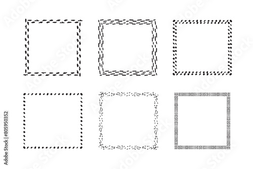 Square frames doodle set,hand-drawn monograms.Edgings and cadres with simple sketchy design elements.Isolated. Vector illustration.