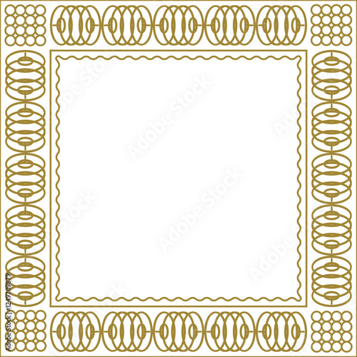 Square golden frame with geometric pattern and additional wavy outline. Version 4. Vector illustration
