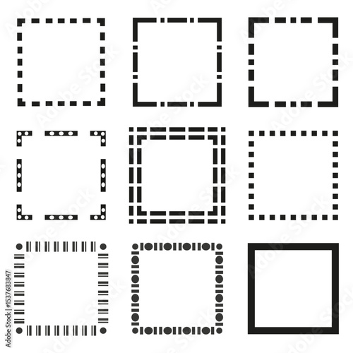 Square outlines icon. Rectangular shapes collection. Vector linear forms. Black frame elements.