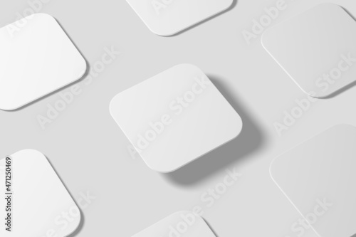 Square Round Corner Business Card White Blank 3D Rendering Mockup