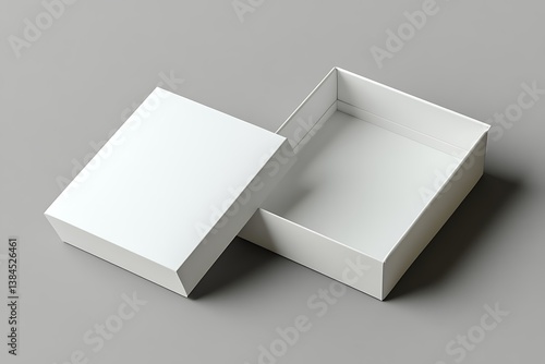 Square white box with separate lid, modern packaging on neutral gray studio background