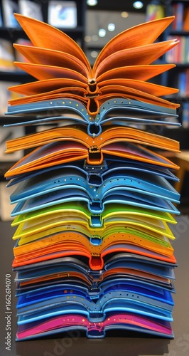 Stacked colorful books, open pages