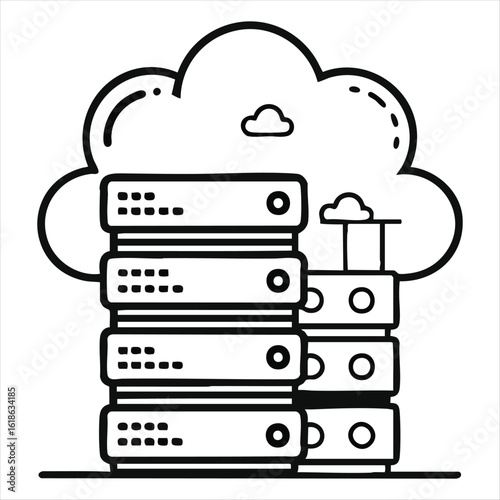 Stacked servers connected to a cloud server rack cloud computing