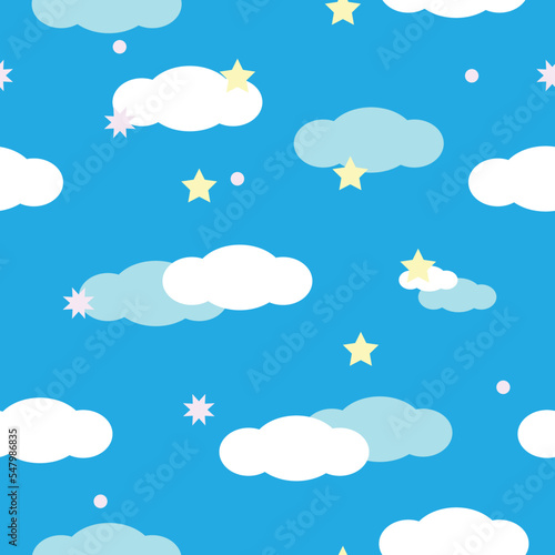 star, cloud and blue sky seamless background vector