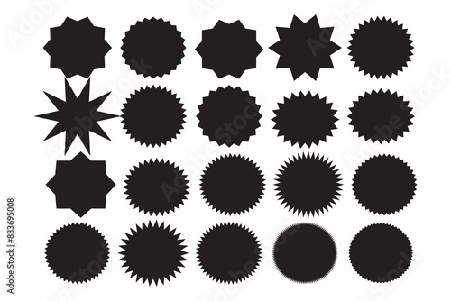 Starburst price sticker. Vector. Round burst star icon. balck circle shapes. Set sale tag badges. Sunburst callout label isolated on white background. vector illustration. Simple empty wave pricetag.