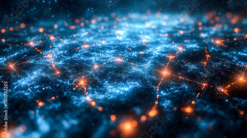 Starry digital network with interconnected glowing points, emphasizing global data flow and technological progress