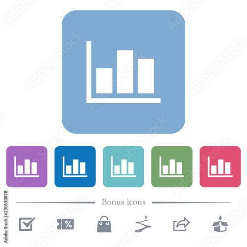 Statistics flat icons on color rounded square backgrounds