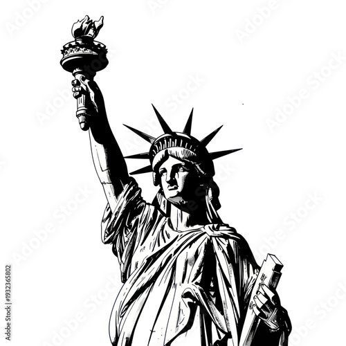 Statue of Liberty Black and White Illustration, Iconic Landmark