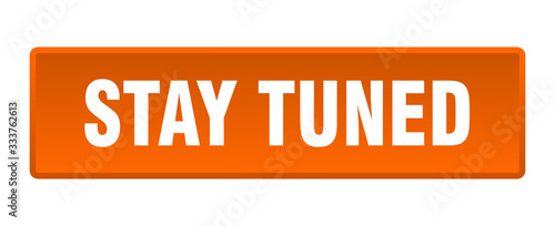 stay tuned button. stay tuned square orange push button